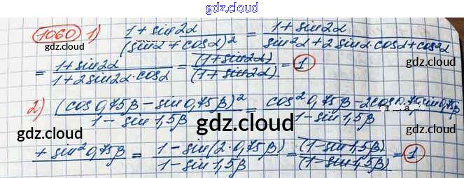 Ответ на задание 1060 Учебник Алгебра за 10 (десятый) класс Колягин, Ткачёва, Федорова, Шабунин Базовый и углубленный уровень 2017
