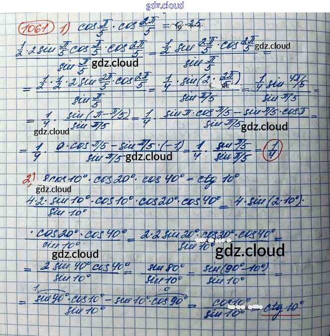 Ответ на задание 1061 Учебник Алгебра за 10 (десятый) класс Колягин, Ткачёва, Федорова, Шабунин Базовый и углубленный уровень 2017