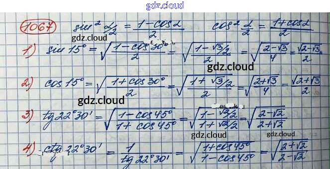 Ответ на задание 1067 Учебник Алгебра за 10 (десятый) класс Колягин, Ткачёва, Федорова, Шабунин Базовый и углубленный уровень 2017