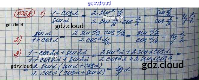 Ответ на задание 1068 Учебник Алгебра за 10 (десятый) класс Колягин, Ткачёва, Федорова, Шабунин Базовый и углубленный уровень 2017