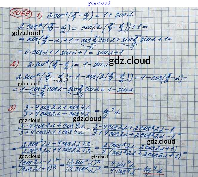 Ответ на задание 1069 Учебник Алгебра за 10 (десятый) класс Колягин, Ткачёва, Федорова, Шабунин Базовый и углубленный уровень 2017