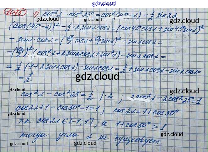 Ответ на задание 1075 Учебник Алгебра за 10 (десятый) класс Колягин, Ткачёва, Федорова, Шабунин Базовый и углубленный уровень 2017