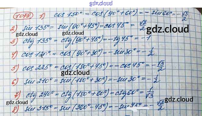 Ответ на задание 1078 Учебник Алгебра за 10 (десятый) класс Колягин, Ткачёва, Федорова, Шабунин Базовый и углубленный уровень 2017