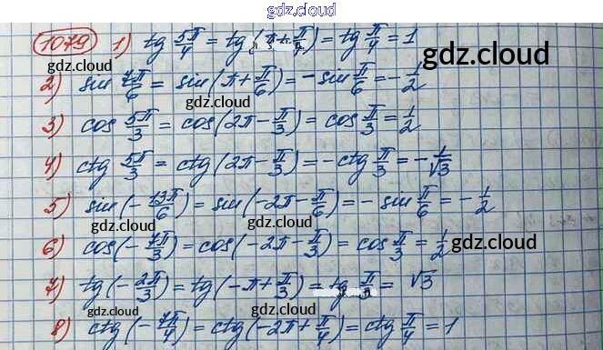 Ответ на задание 1079 Учебник Алгебра за 10 (десятый) класс Колягин, Ткачёва, Федорова, Шабунин Базовый и углубленный уровень 2017