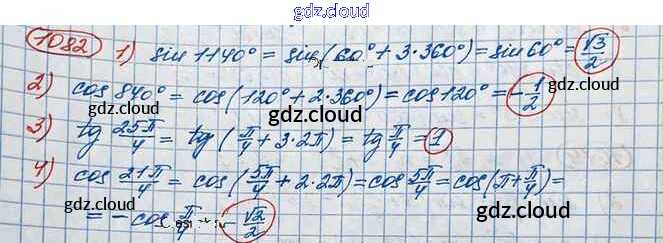 Ответ на задание 1082 Учебник Алгебра за 10 (десятый) класс Колягин, Ткачёва, Федорова, Шабунин Базовый и углубленный уровень 2017