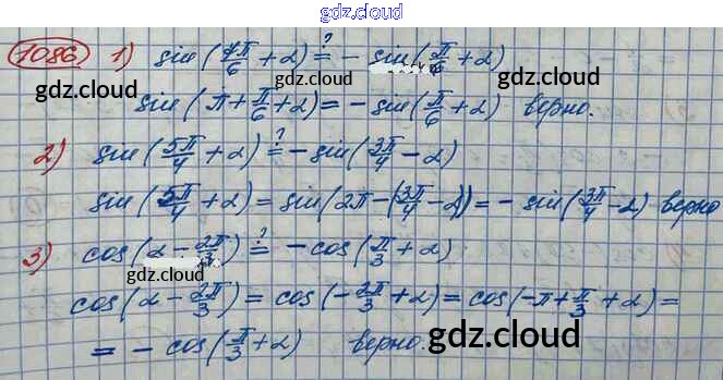 Ответ на задание 1086 Учебник Алгебра за 10 (десятый) класс Колягин, Ткачёва, Федорова, Шабунин Базовый и углубленный уровень 2017