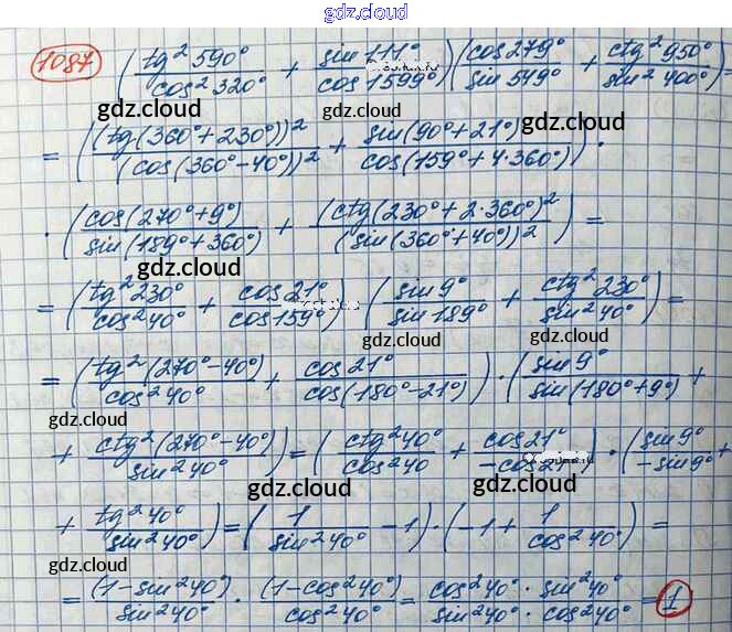 Ответ на задание 1087 Учебник Алгебра за 10 (десятый) класс Колягин, Ткачёва, Федорова, Шабунин Базовый и углубленный уровень 2017
