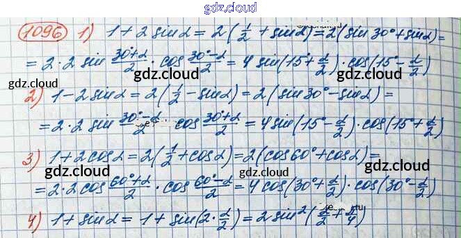 Ответ на задание 1096 Учебник Алгебра за 10 (десятый) класс Колягин, Ткачёва, Федорова, Шабунин Базовый и углубленный уровень 2017