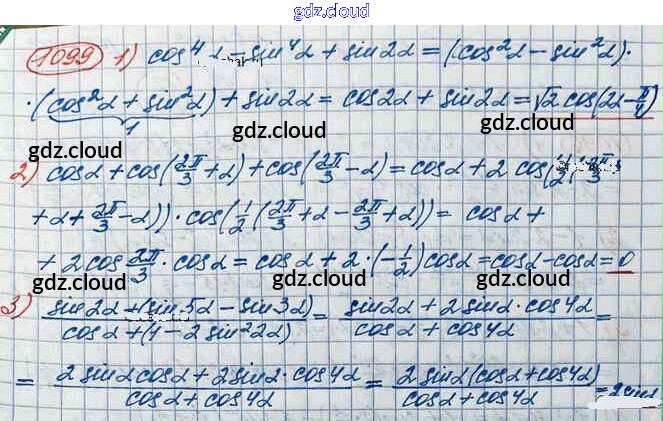 Ответ на задание 1099 Учебник Алгебра за 10 (десятый) класс Колягин, Ткачёва, Федорова, Шабунин Базовый и углубленный уровень 2017