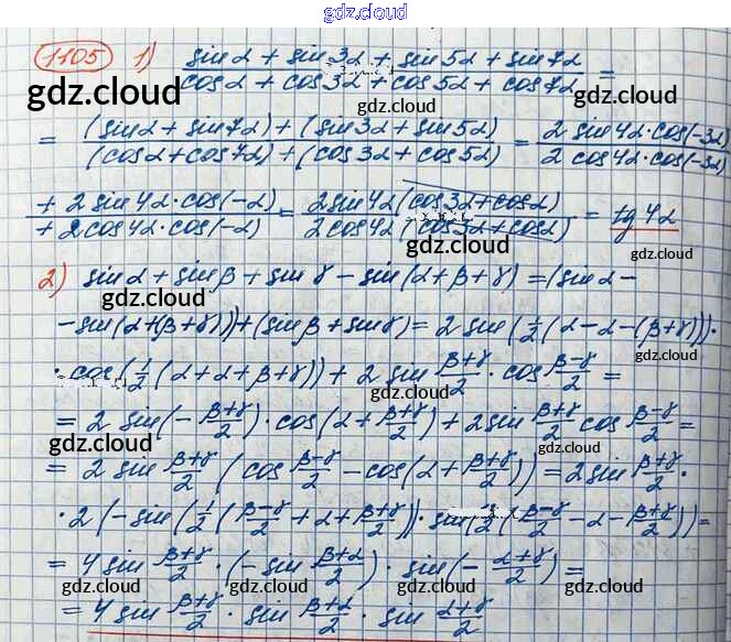 Ответ на задание 1105 Учебник Алгебра за 10 (десятый) класс Колягин, Ткачёва, Федорова, Шабунин Базовый и углубленный уровень 2017