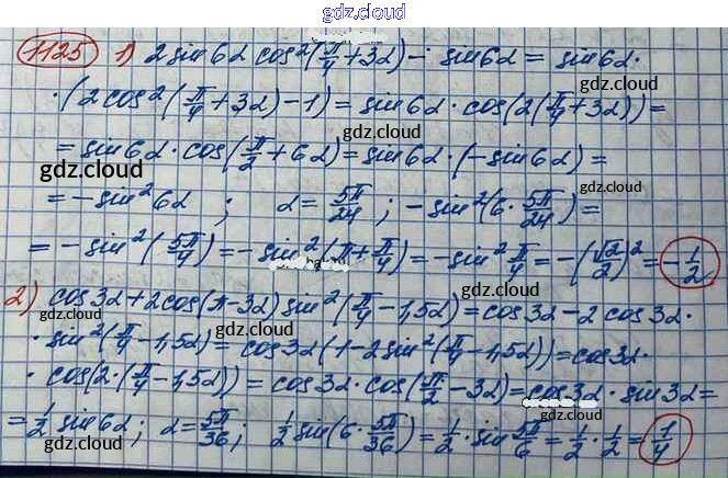 Ответ на задание 1125 Учебник Алгебра за 10 (десятый) класс Колягин, Ткачёва, Федорова, Шабунин Базовый и углубленный уровень 2017