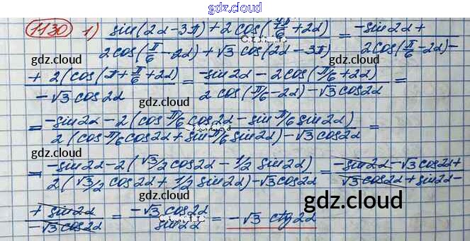 Ответ на задание 1130 Учебник Алгебра за 10 (десятый) класс Колягин, Ткачёва, Федорова, Шабунин Базовый и углубленный уровень 2017