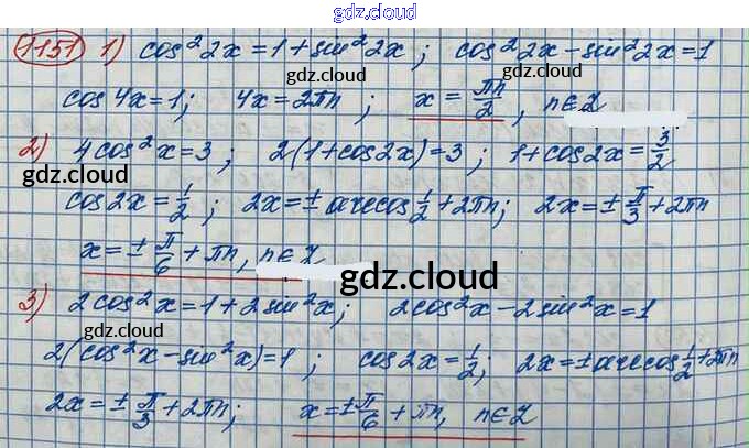 Ответ на задание 1151 Учебник Алгебра за 10 (десятый) класс Колягин, Ткачёва, Федорова, Шабунин Базовый и углубленный уровень 2017