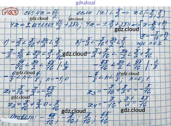 Ответ на задание 1153 Учебник Алгебра за 10 (десятый) класс Колягин, Ткачёва, Федорова, Шабунин Базовый и углубленный уровень 2017