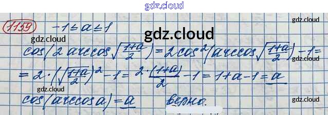 Ответ на задание 1159 Учебник Алгебра за 10 (десятый) класс Колягин, Ткачёва, Федорова, Шабунин Базовый и углубленный уровень 2017