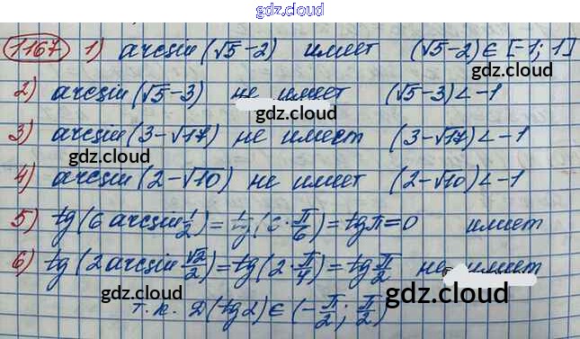 Ответ на задание 1167 Учебник Алгебра за 10 (десятый) класс Колягин, Ткачёва, Федорова, Шабунин Базовый и углубленный уровень 2017