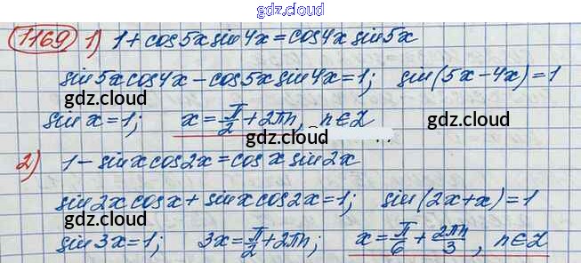 Ответ на задание 1169 Учебник Алгебра за 10 (десятый) класс Колягин, Ткачёва, Федорова, Шабунин Базовый и углубленный уровень 2017