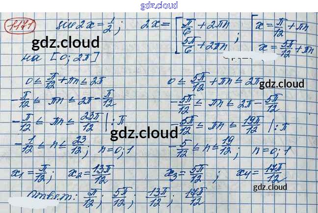 Ответ на задание 1171 Учебник Алгебра за 10 (десятый) класс Колягин, Ткачёва, Федорова, Шабунин Базовый и углубленный уровень 2017