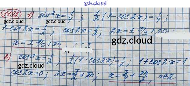Ответ на задание 1192 Учебник Алгебра за 10 (десятый) класс Колягин, Ткачёва, Федорова, Шабунин Базовый и углубленный уровень 2017
