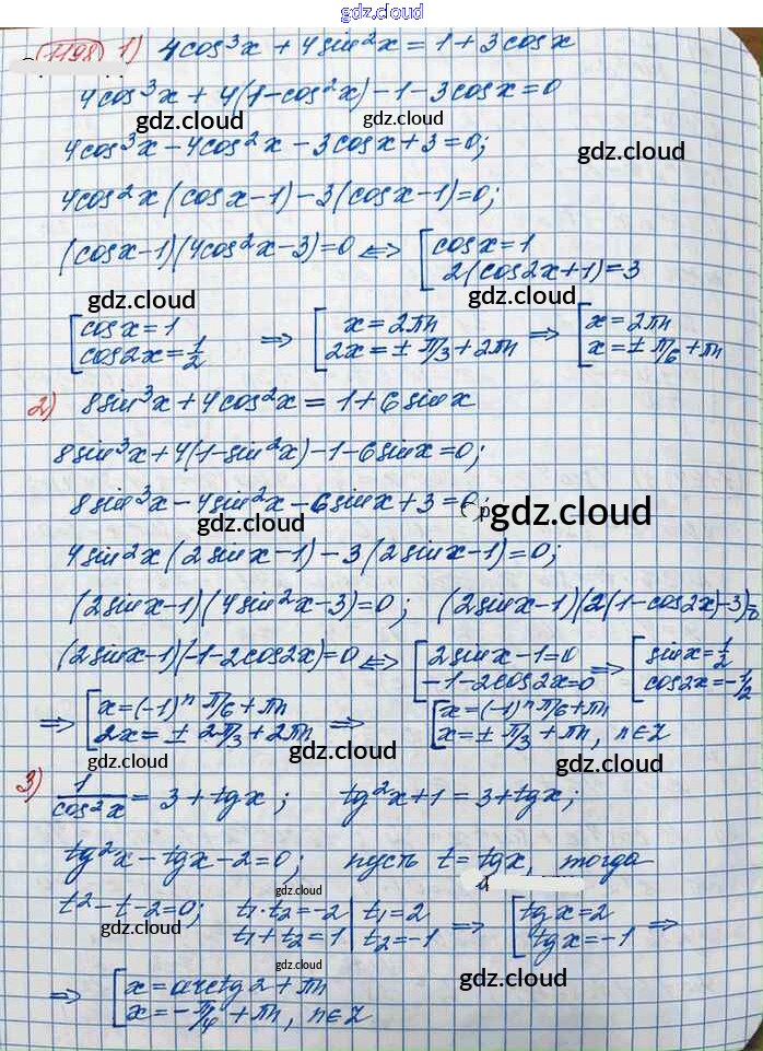 Ответ на задание 1198 Учебник Алгебра за 10 (десятый) класс Колягин, Ткачёва, Федорова, Шабунин Базовый и углубленный уровень 2017