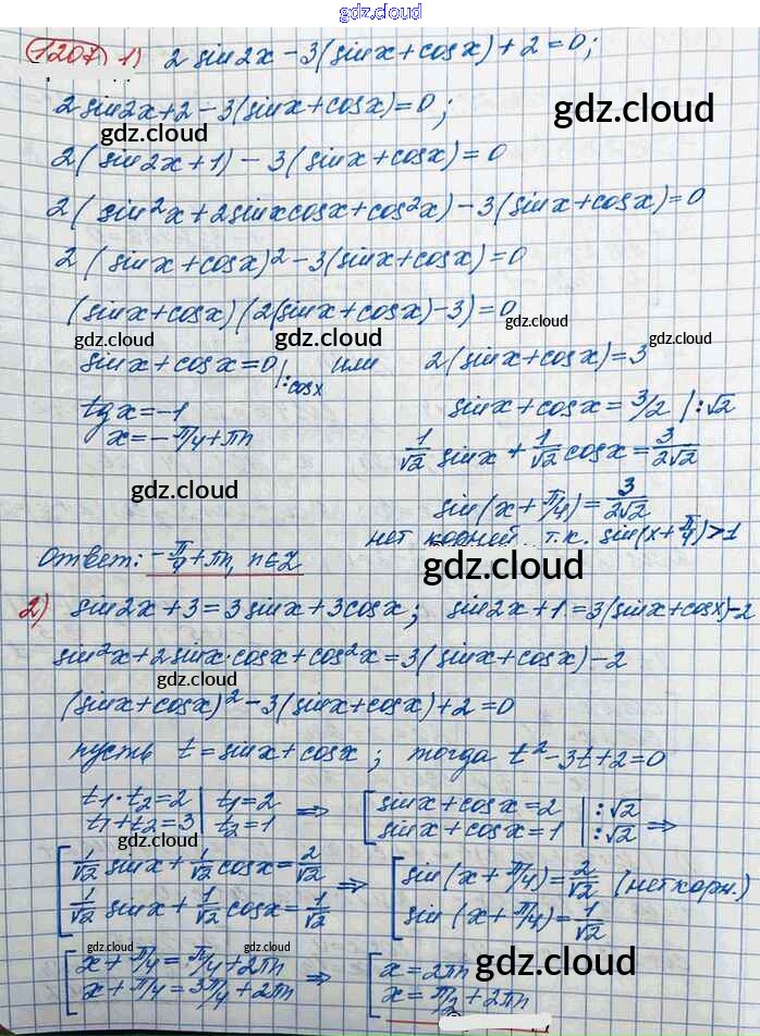 Ответ на задание 1207 Учебник Алгебра за 10 (десятый) класс Колягин, Ткачёва, Федорова, Шабунин Базовый и углубленный уровень 2017