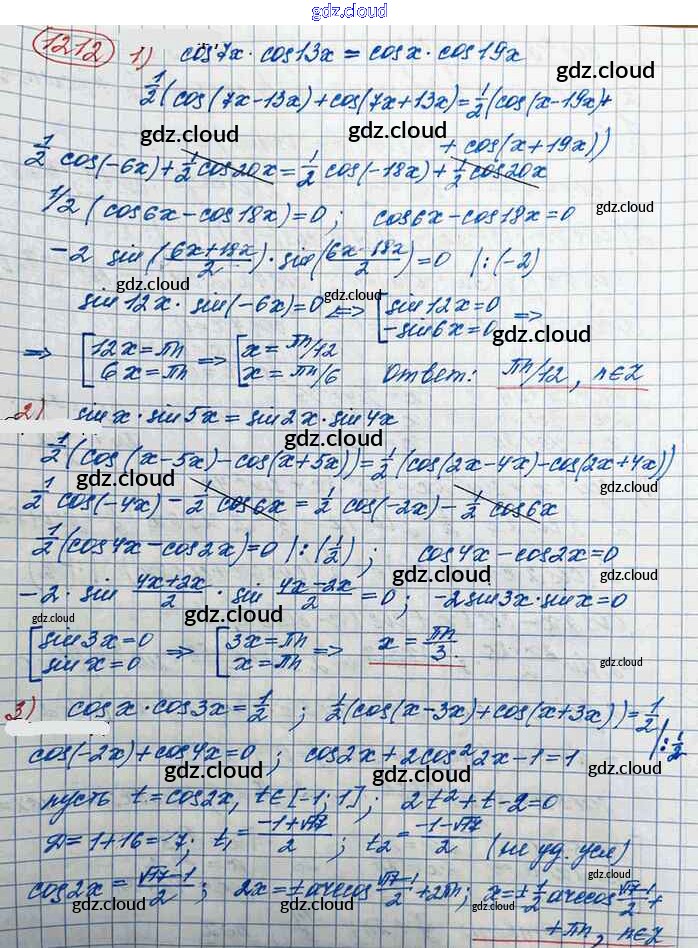 Ответ на задание 1212 Учебник Алгебра за 10 (десятый) класс Колягин, Ткачёва, Федорова, Шабунин Базовый и углубленный уровень 2017