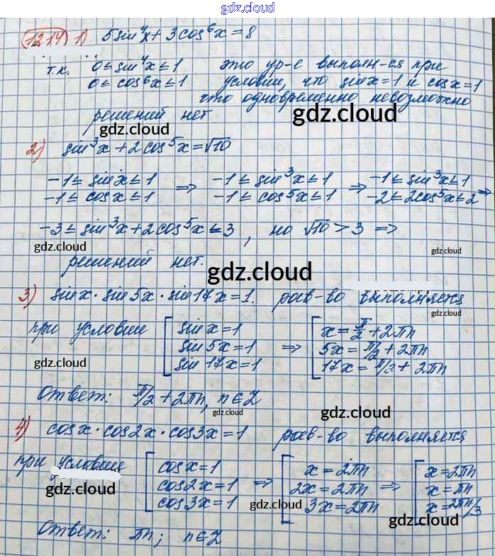 Ответ на задание 1214 Учебник Алгебра за 10 (десятый) класс Колягин, Ткачёва, Федорова, Шабунин Базовый и углубленный уровень 2017