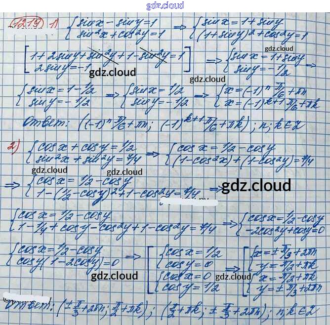 Ответ на задание 1219 Учебник Алгебра за 10 (десятый) класс Колягин, Ткачёва, Федорова, Шабунин Базовый и углубленный уровень 2017