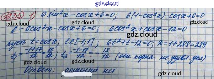 Ответ на задание 1235 Учебник Алгебра за 10 (десятый) класс Колягин, Ткачёва, Федорова, Шабунин Базовый и углубленный уровень 2017