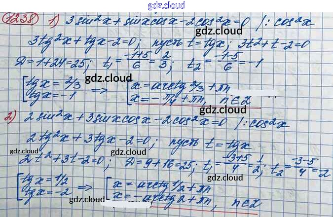 Ответ на задание 1238 Учебник Алгебра за 10 (десятый) класс Колягин, Ткачёва, Федорова, Шабунин Базовый и углубленный уровень 2017