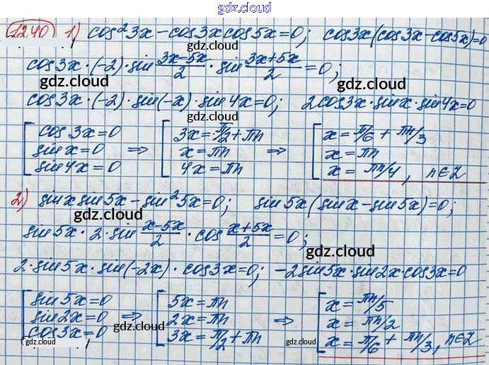 Ответ на задание 1240 Учебник Алгебра за 10 (десятый) класс Колягин, Ткачёва, Федорова, Шабунин Базовый и углубленный уровень 2017