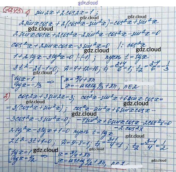 Ответ на задание 1243 Учебник Алгебра за 10 (десятый) класс Колягин, Ткачёва, Федорова, Шабунин Базовый и углубленный уровень 2017