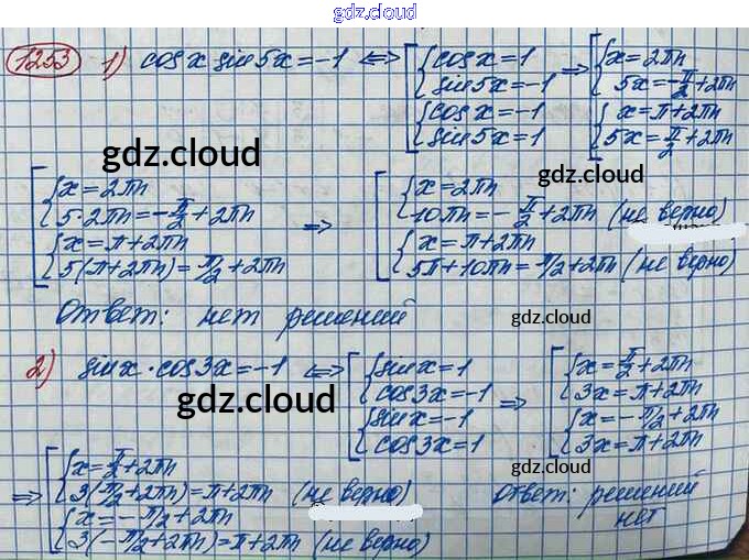 Ответ на задание 1253 Учебник Алгебра за 10 (десятый) класс Колягин, Ткачёва, Федорова, Шабунин Базовый и углубленный уровень 2017