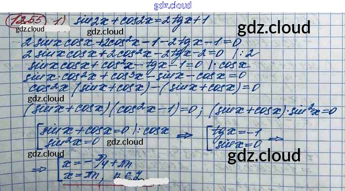 Ответ на задание 1255 Учебник Алгебра за 10 (десятый) класс Колягин, Ткачёва, Федорова, Шабунин Базовый и углубленный уровень 2017