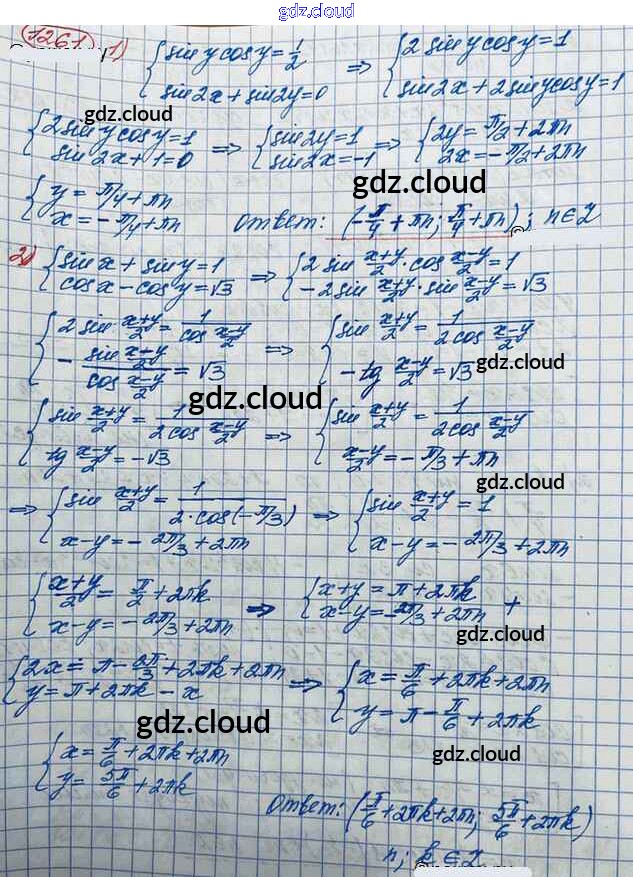 Ответ на задание 1261 Учебник Алгебра за 10 (десятый) класс Колягин, Ткачёва, Федорова, Шабунин Базовый и углубленный уровень 2017