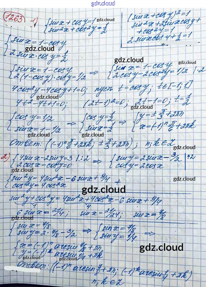 Ответ на задание 1263 Учебник Алгебра за 10 (десятый) класс Колягин, Ткачёва, Федорова, Шабунин Базовый и углубленный уровень 2017