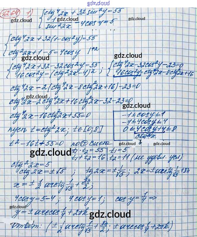 Ответ на задание 1264 Учебник Алгебра за 10 (десятый) класс Колягин, Ткачёва, Федорова, Шабунин Базовый и углубленный уровень 2017
