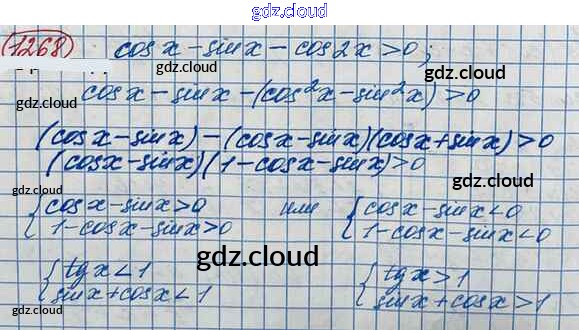 Ответ на задание 1268 Учебник Алгебра за 10 (десятый) класс Колягин, Ткачёва, Федорова, Шабунин Базовый и углубленный уровень 2017