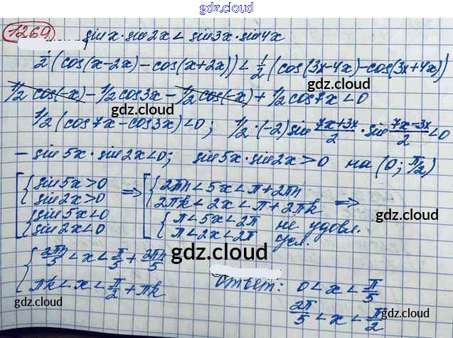 Ответ на задание 1269 Учебник Алгебра за 10 (десятый) класс Колягин, Ткачёва, Федорова, Шабунин Базовый и углубленный уровень 2017