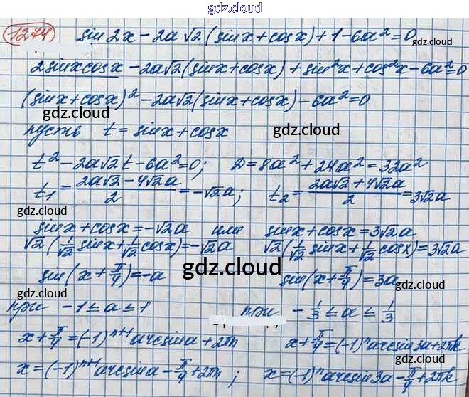 Ответ на задание 1274 Учебник Алгебра за 10 (десятый) класс Колягин, Ткачёва, Федорова, Шабунин Базовый и углубленный уровень 2017