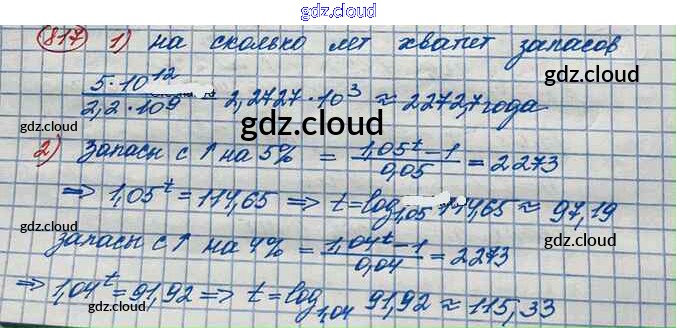 Ответ на задание 817 Учебник Алгебра за 10 (десятый) класс Колягин, Ткачёва, Федорова, Шабунин Базовый и углубленный уровень 2017