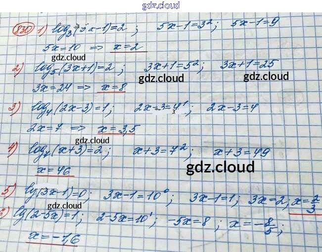 Ответ на задание 830 Учебник Алгебра за 10 (десятый) класс Колягин, Ткачёва, Федорова, Шабунин Базовый и углубленный уровень 2017