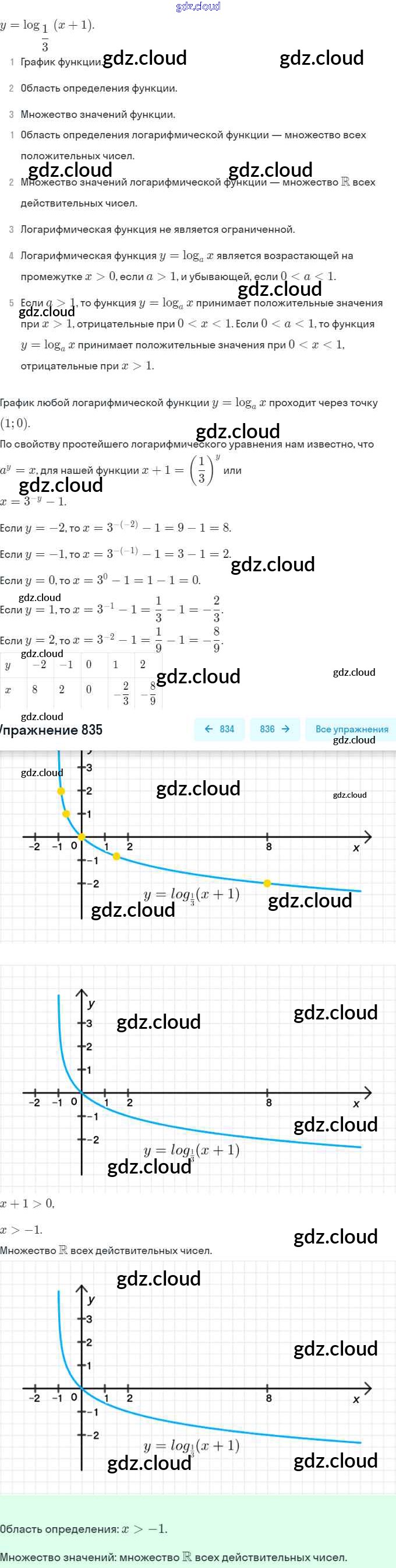 Ответ на задание 835 Учебник Алгебра за 10 (десятый) класс Колягин, Ткачёва, Федорова, Шабунин Базовый и углубленный уровень 2017