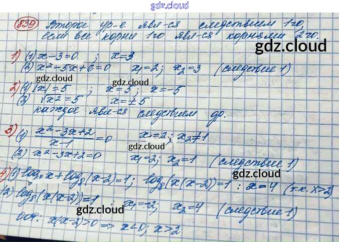 Ответ на задание 839 Учебник Алгебра за 10 (десятый) класс Колягин, Ткачёва, Федорова, Шабунин Базовый и углубленный уровень 2017