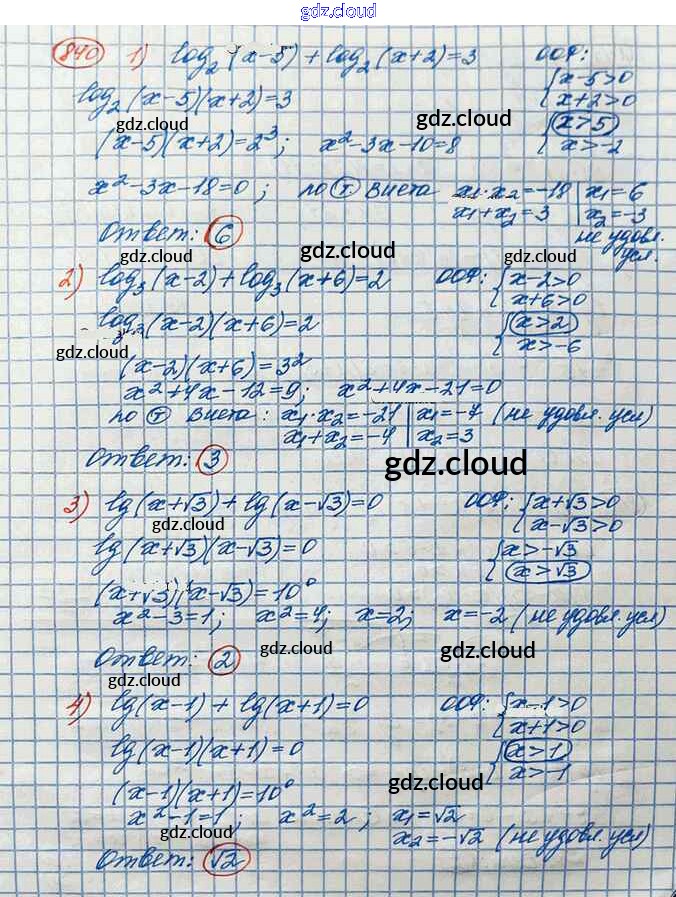 Ответ на задание 840 Учебник Алгебра за 10 (десятый) класс Колягин, Ткачёва, Федорова, Шабунин Базовый и углубленный уровень 2017