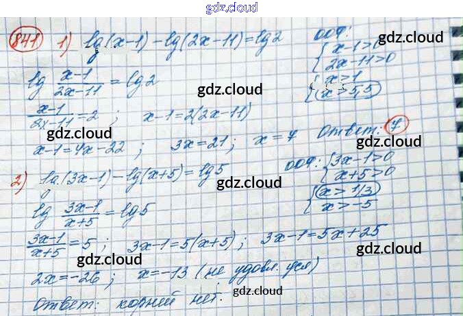 Ответ на задание 841 Учебник Алгебра за 10 (десятый) класс Колягин, Ткачёва, Федорова, Шабунин Базовый и углубленный уровень 2017