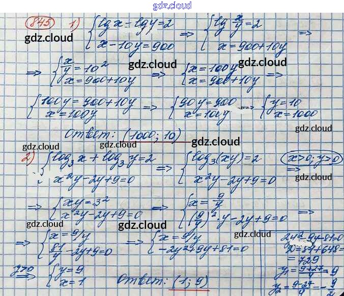 Ответ на задание 845 Учебник Алгебра за 10 (десятый) класс Колягин, Ткачёва, Федорова, Шабунин Базовый и углубленный уровень 2017