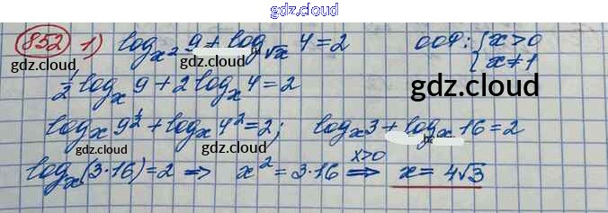 Ответ на задание 852 Учебник Алгебра за 10 (десятый) класс Колягин, Ткачёва, Федорова, Шабунин Базовый и углубленный уровень 2017