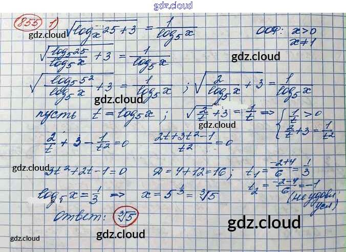 Ответ на задание 855 Учебник Алгебра за 10 (десятый) класс Колягин, Ткачёва, Федорова, Шабунин Базовый и углубленный уровень 2017
