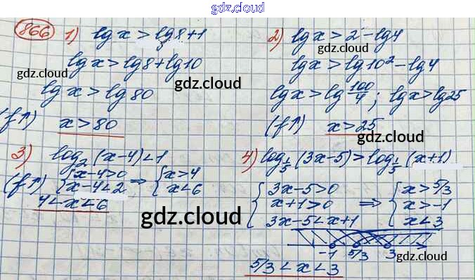 Ответ на задание 866 Учебник Алгебра за 10 (десятый) класс Колягин, Ткачёва, Федорова, Шабунин Базовый и углубленный уровень 2017
